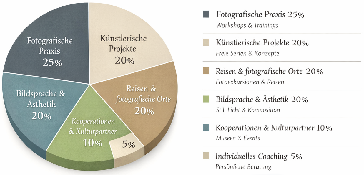 Unsere Fotokurse sind kreative Entdeckungsreisen zu außergewöhnlichen Orten. Sie lernen im praktischen Arbeiten, wie Licht, Raum und Atmosphäre Ihre Bilder prägen. Im Mittelpunkt steht die Entwicklung Ihrer persönlichen Bildsprache. Individuelles Feedback und konzentrierte Bildbesprechungen begleiten Sie zu eigenständigen, wirkungsvollen Fotos.
