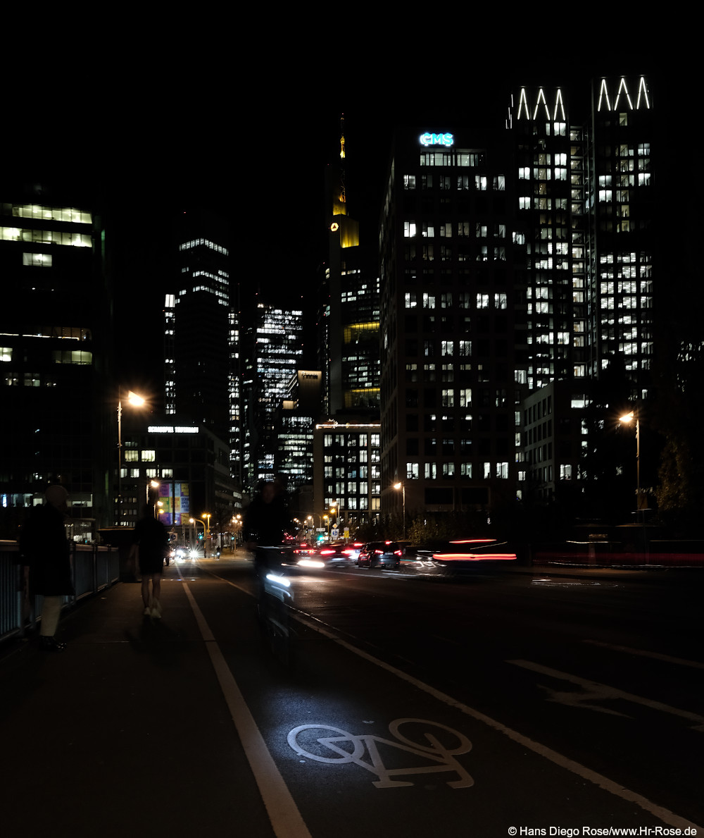 Von den belebten Straßen des Bankenviertels mit ihren hoch aufragenden modernen Wolkenkratzern bis zu den ruhigeren, historischen Gassen in Alt-Sachsenhausen oder am Main: Streetfotografen halten das städtische Leben in all seinen Facetten fest, sei es das geschäftige Treiben der Berufspendler, zufällige Begegnungen auf der Zeil oder die architektonischen Kontraste zwischen Moderne und Tradition.