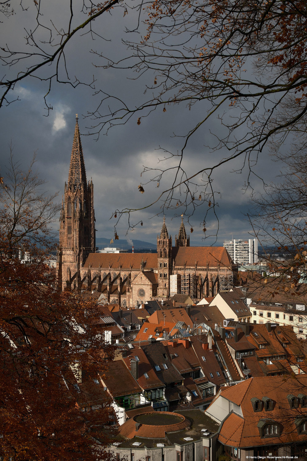 Der Herbst verleiht der Freiburger Altstadt eine ruhige, stimmungsvolle Atmosphäre. Rund um das Freiburger Münster treffen warmes Herbstlaub, dunkler Sandstein und weiches Licht auf enge Gassen und mittelalterliche architektonische Strukturen. Diese Kulisse bietet präzise Fotomotive für Stadtfotografie, Architekturfotografie und herbstliche Naturdetails im urbanen Raum.