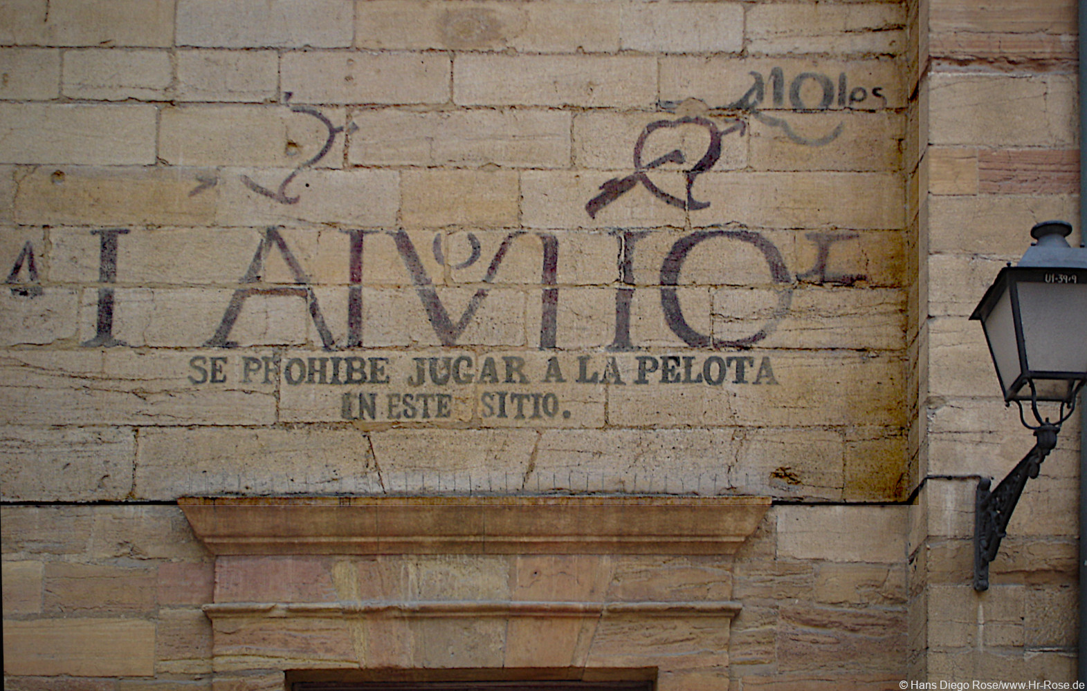 Die großen Buchstaben „AVISO“ (deutsch: „Hinweis“ oder „Bekanntmachung“) darüber verstärken die offizielle Natur dieser Anweisung. Solche Verbote waren in der Vergangenheit üblich, um Schäden an den Gebäuden zu vermeiden oder die Ruhe in der Nähe von Kirchen zu bewahren.