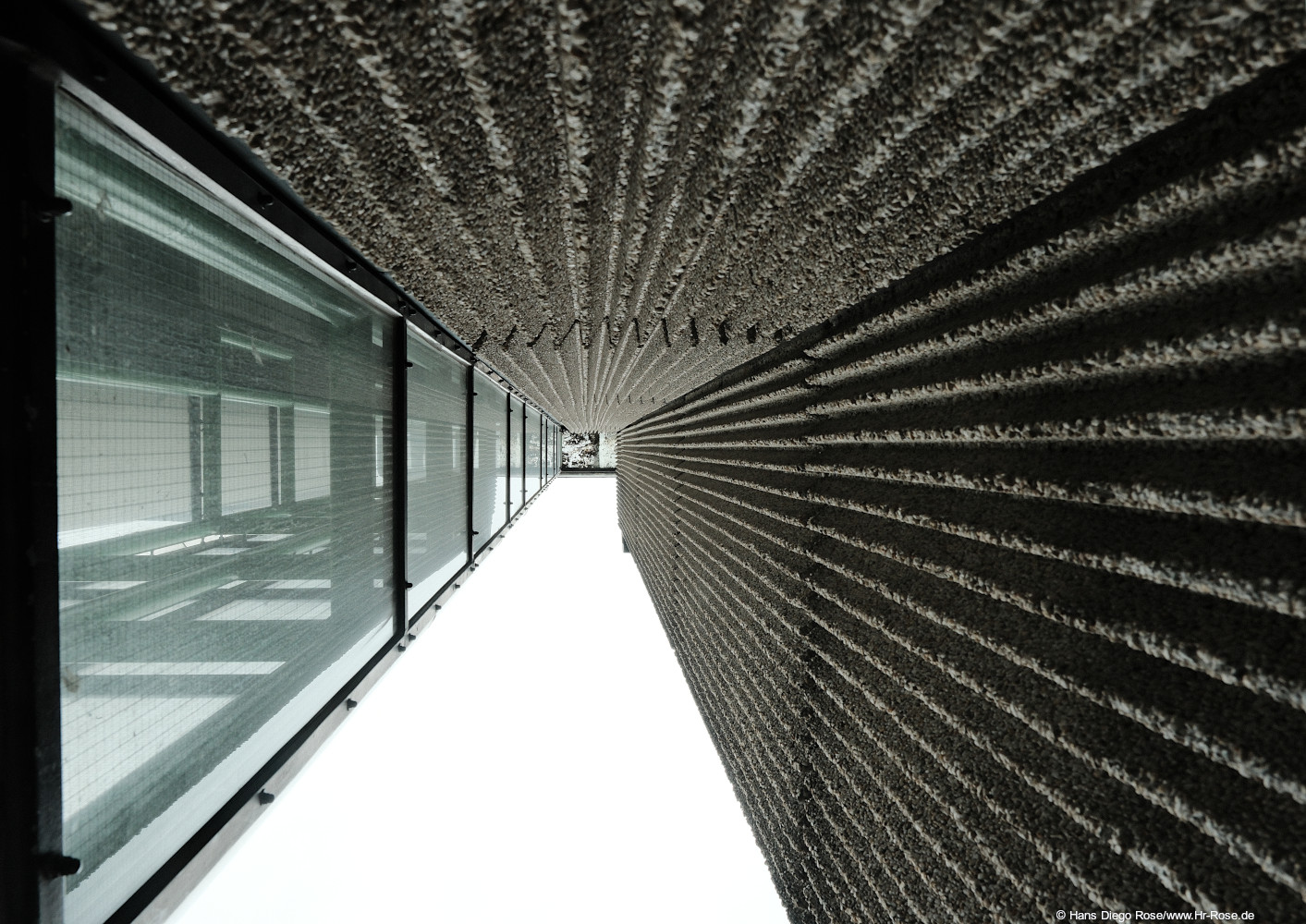 Froschperspektive im urbanen Raum: Die Architektur gewinnt an Höhe und Dominanz, Linien bündeln sich und lenken den Blick nach oben.
